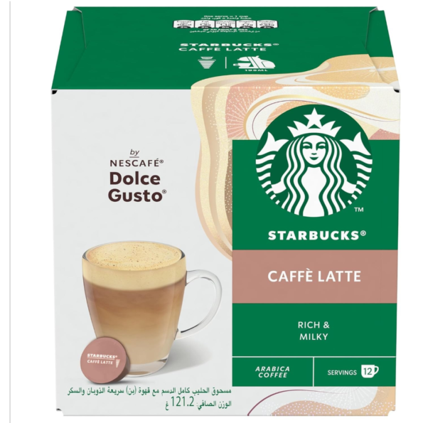 Starbucks Caffe Latte By Nescafe Dolce Gusto Coffee Capsules Box of 12 Servings