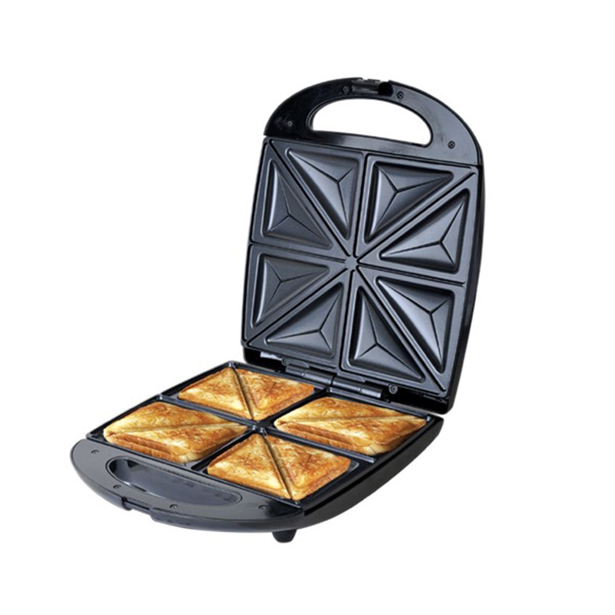 Brand Warranty Voltage: 230V Frequency: 50HZ Power: 1100W Delicious 4 Slice hot sandwiches. Non stick coated plates for easy cleaning. Indicator lamp for ready sandwiches. Stands upright for space saving storage.