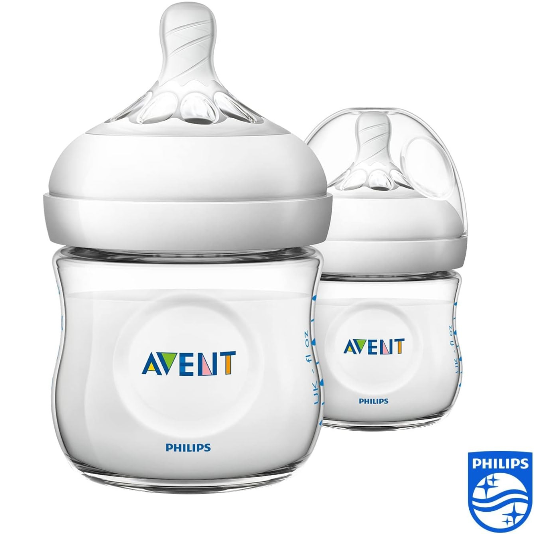 Natural latch on due to the wide breast shaped teat The wide breast shaped teat promotes a natural latch on similar to the breast, making it easy for your baby to combine breast and bottle feeding. Ultra soft teat designed to mimic the feel of the breast The teat has an ultra soft texture, designed to mimic the feel of the breast. Flexible spiral design combined with comfort petals Flexible spiral design, combined with our unique comfort petals to create a flexible teat, allowing for a more natural feed without teat collapse. Anti-colic valve designed to reduce colic and discomfort Anti-colic valve designed to keep air away from your baby s tummy, to help reduce colic and discomfort. Teats with different flow rates available The Philips Avent Natural range offers different teat softness and increasing flow rates for every development stage of your baby. Ergonomic shape for maximum comfort Due to the unique shape, the bottle is easy to hold and grip in any direction for maximum comfort, even for baby s tiny hands. Simple to use and clean, quick and easy assembly Wide bottle neck makes filling and cleaning easy. Only a few parts for quick and simple assembly. Compatible with the Philips Avent Natural range Mix and match our breast pump, bottle and cup parts, and create the product that works for you, when you need it! This bottle is BPA free The Philips Avent Natural bottle is made of BPA free* material (polypropylene).