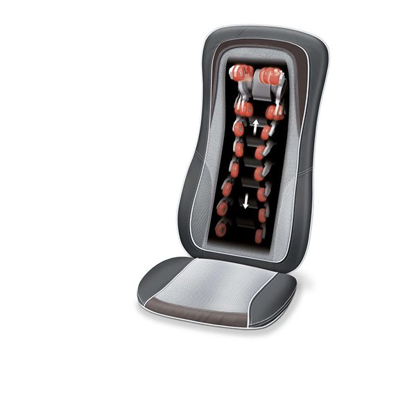Shiatsu Seat Cover A penetrating full-body massage is now possible at home. The automatic body-scan function provides customized relaxation with Shiatsu, swing and roll massage Penetrating full-body massage with 4-head massage system Automatic body-scan function Shiatsu, swing and roll massage Soothing neck massage Extra-large massage area With optional light and heat function Washable mesh cover 4-head massage system individually adjustable Movement along the spine 3 automatic massage programs can be selected 3 individually selectable massage areas Heads with 4 adjustable widths Leather-effect surface (washable PU) Washable mesh cover for back (40 C) Ergonomic seat shape with extra-large massage area Handy hook for convenient storage in cupboards Can be used on all seats with sufficient seat depth and back rest Solid back cover Attached using hook-and-loop fastening bands