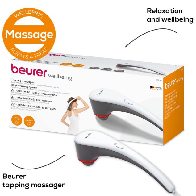 Massager for a deep, relaxing tapping massage & 3 attachments With the penetrating and relaxing tapping massage you can relax and loosen your muscles. Penetrating and relaxing tapping massage For relaxing and loosening muscles Continuously adjustable massage intensity Heat function can be selected separately 3 interchangeable massage attachments (nub attachment, round attachment, cylinder-shaped attachment) with threads for secure hold and easy use Non-slip handle Ergonomically shaped