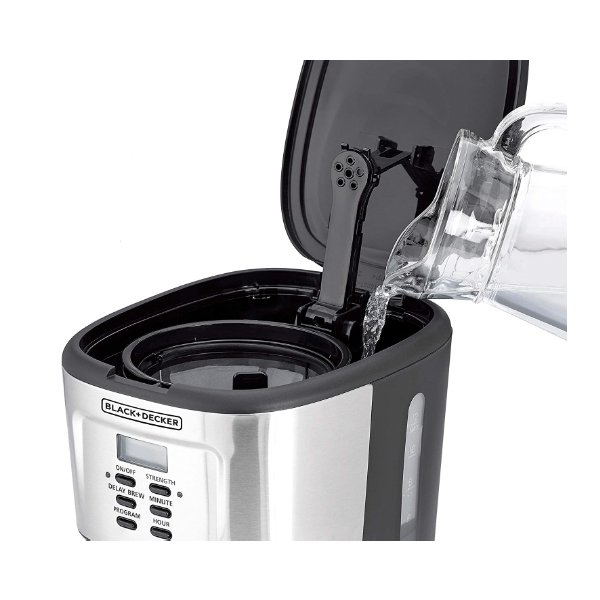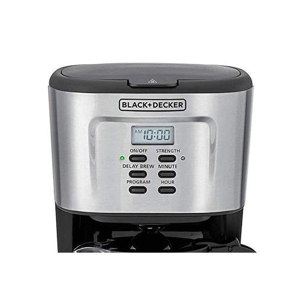 900W Programmable Coffee Maker with LCD Display With LCD Display Programmable up to 24 hours Non-stick warming plate Safe to use High quality If you crave a caffeine fix daily and simplifying the morning wake-up routine is top priority. Now you won t have to wait to enjoy that first sip the moment you want it. Brewing coffee has never been easier with this BLACK+DECKER 12-Cup Programmable Coffee Maker! With stainless steel durability and features like digital control, adjustable brew strength selector this machine can consistently deliver high-quality, customized beverage anytime you like! The DCM85 is equipped with a LCD Display with digital controls for ease of operation. The 24 hour programming options allows you to conveniently prepare coffee in advance. The brew strength option adds versatility for normal or strong brew. An easy to read water level marking makes it convenient to fill the right amount of water for your perfect cup of coffee. The water reservoir has openings to prevent over filling. Just add coffee to the removeable and reusable filter. The filter and funnel can be removed making it easy to clean. The glass carafe has up to 12 cup markings and the non-stick warming plate keeps your coffee warm up to 40 minutes after brewing.
