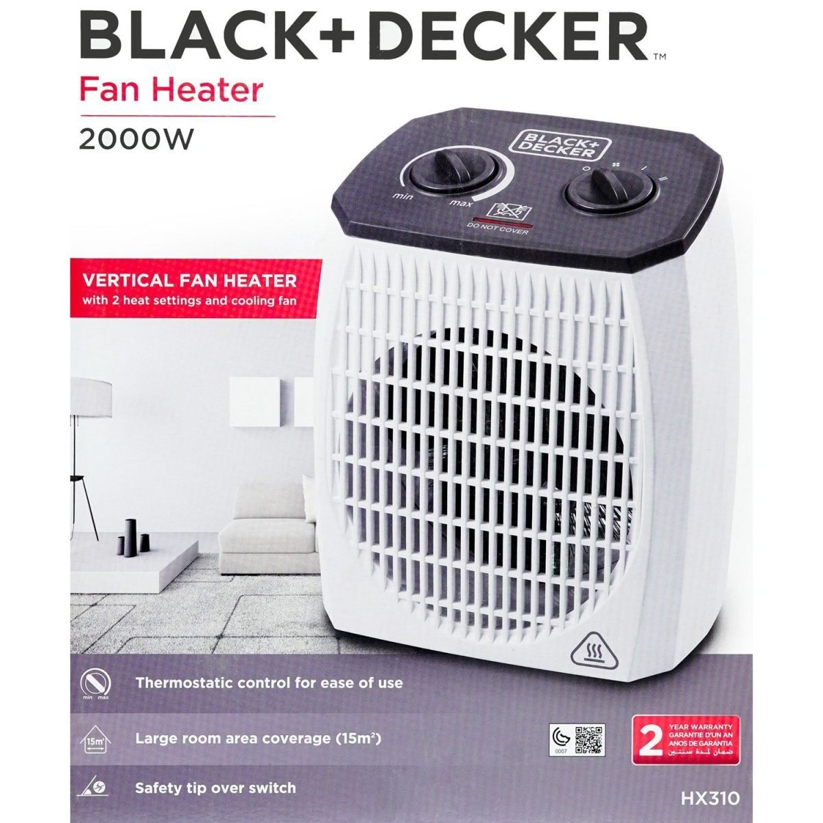 2 years brand warranty Power:2000 W,220-240 V Thermostatic Control For Ease Of Use 2 Heat Setting Cooling Fan