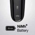 1 years brand warranty Electric shaver with three pressure-sensitive shaving elements for efficiency and skin comfort Durable cordless electric razor, washable under water Two rechargeable long-life NiMH batteries Designed and engineered in Germany by Braun Contents: Braun Series 3 electric razor, protective cap, smart plug for automatic 100-240 V adjustment