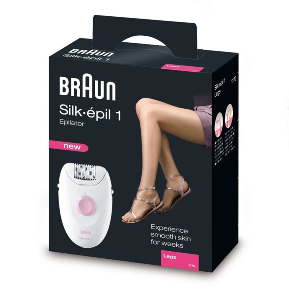 Beautifully smooth skin for longer The Braun Silk-epil 1 is the perfect example for the simplicity of epilation: it gently removes hair by the root, so your skin stays smooth for up to 4 weeks. 20-Tweezer System The 20 tweezers efficiently remove hairs by the root for long-lasting smoothness. SoftLift Tips The SoftLift Tips lift flat lying hair and guide it to the tweezers for easier removal. Power source Corded / Main