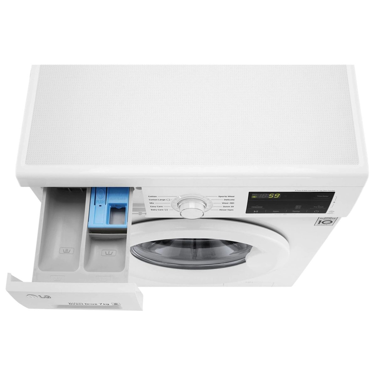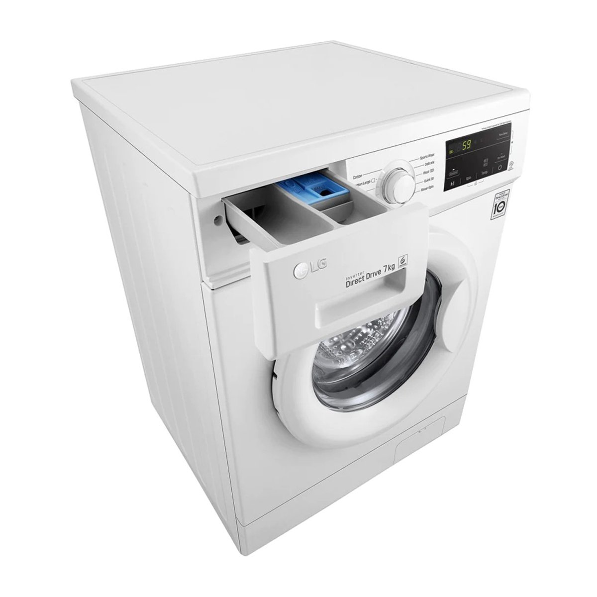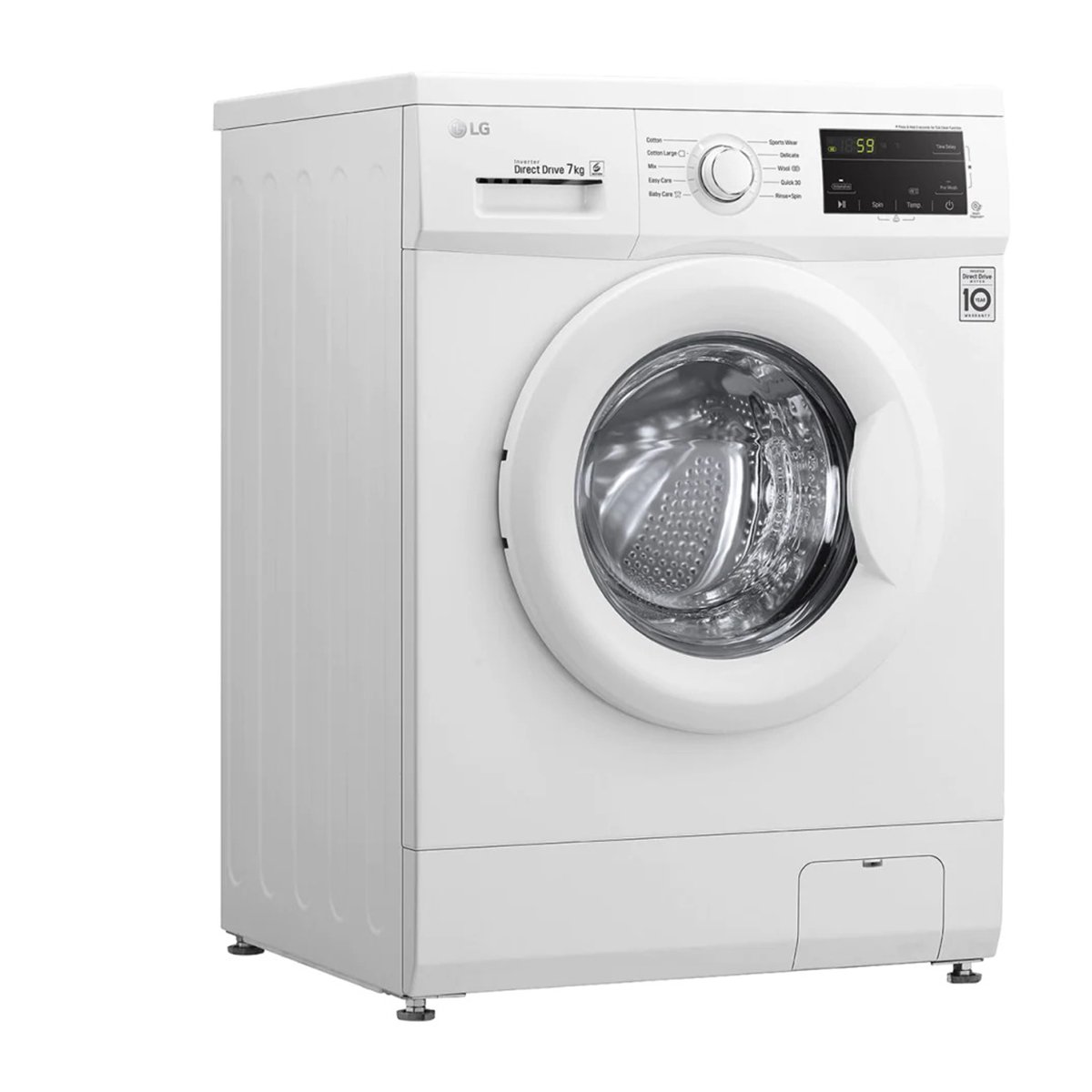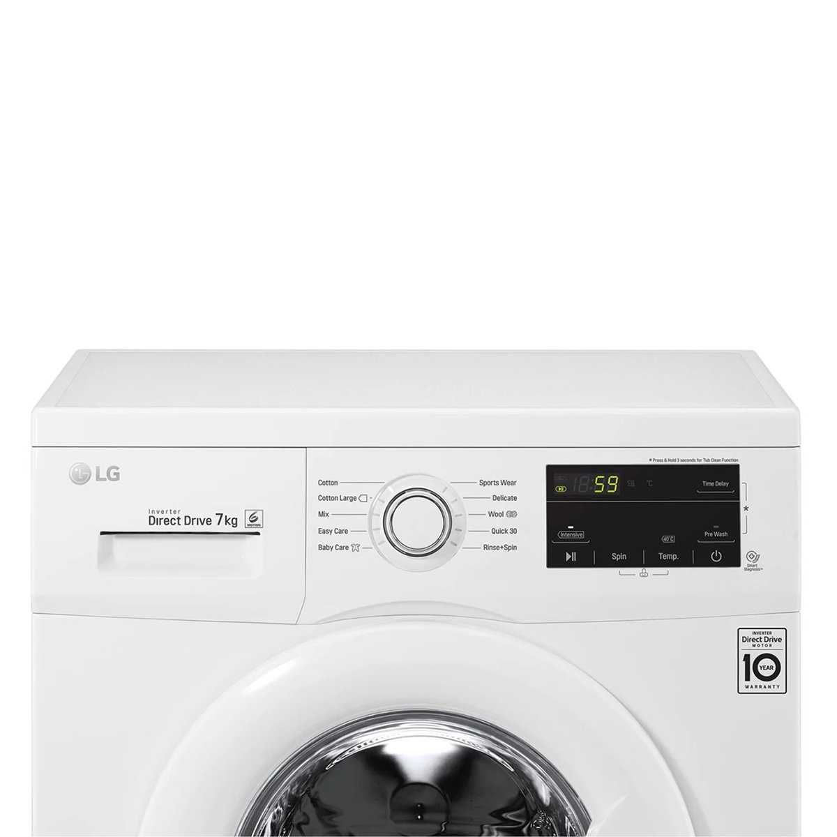 SPEC SUMMARY CAPACITYWasher (7Kg) DIMENSION (W X H X D, MM)600 x 850 x 550 mm MAIN TECHNOLOGY:6 Motion Direct Drive ADDITIONAL BENEFIT:Sleek design & convinient Touch UI BASIC SPECIFICATION TypeFront Loading Washer Capacity7Kg ColorWhite Dimension600 X 850 X 550 Smart FunctionSmart Diagnosis ADDITIONAL FEATURES Inverter DD Motor (10 Years Warranty, 6 Motion)Yes Smart Diagnosis Yes Motor typeDirect Drive 10 Years WarrantyYes RPM1200 Direct Drive MotorYes 6 Motion DDYes LED DisplayYes Energy Efficiency ClassA+++ 30%