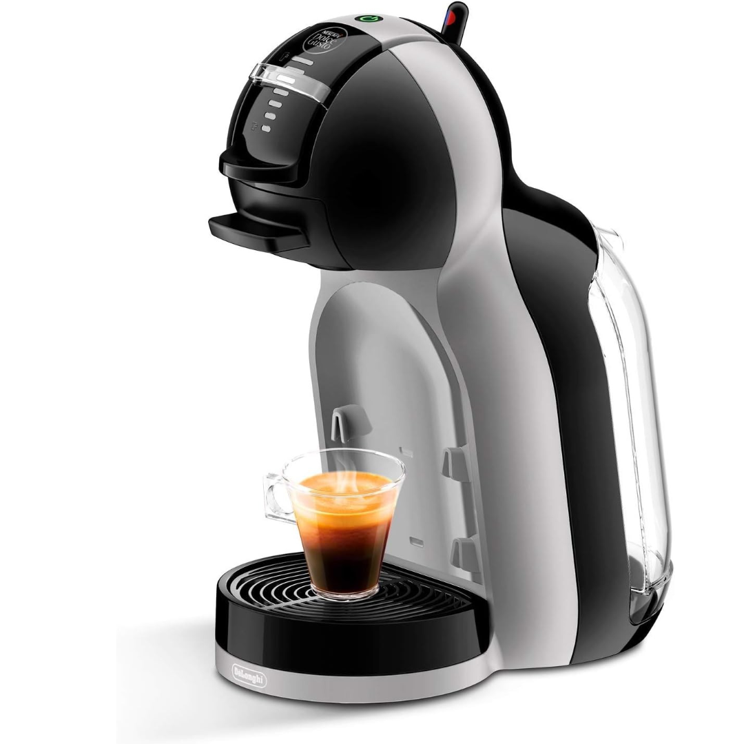 WHAT S IN THE BOX A Mini Me Automatic Coffee Machine This modern automatic coffee machine, with its compact size, will fit in any kitchen! You will be able to prepare coffee-shop quality coffee in the comfort of your home, thanks to the machine s high pressure system. Key features: Prepares high quality coffee in just a few seconds Up to 15 bar pump pressure to extract rich flavours, create velvety cremas and frothy coffees Automatically stops the water flow for easy coffee preparation Delivers over 50 drink varieties in a range of cup sizes Technical Details Brand NESCAFE DOLCE GUSTO Model Number R132180655 Color Black/Grey Product Dimensions 9.49 x 6.34 x 12.01 cm; 2.9 kg Capacity 0.8 Liters Power / Wattage 1500 watts Voltage 120 Volts Material Plastic Special Features Milk Frother Item Weight 2.9 Kilograms