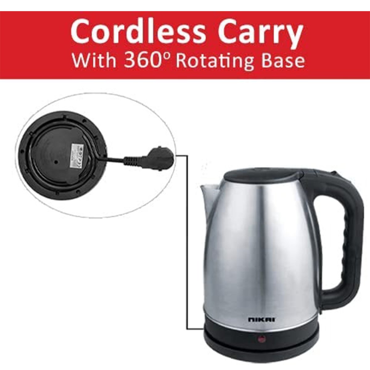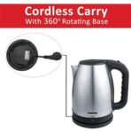 36deg Kettle with stainless steel body Matt finishing Boil dry protection Auto shut off On/off switch with light indicator Transparent water gauge Cord storage Power: 1850-2200W