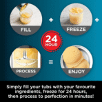 SO MUCH MORE THAN ICE CREAM: Create & customise delicious homemade treats including ice cream, gelato, milkshakes, sorbet, smoothie bowls & more FILL, FREEZE, PROCESS, ENJOY: Simply fill a tub with your favourite ingredients, pop in the freezer in 24 hours, then process in minutes when you re ready to serve! Creamify Technology transforms your frozen base into a creamy treat YOUR ICE CREAM, YOUR WAY: Make it indulgent, low sugar, dairy free, vegan & more, to suit every taste; Mix in choc chips, sweets & nuts to complete your treats 7 PRE-SET PROGRAMS: Ice Cream, Gelato, Sorbet, Smoothie Bowl, Light Ice Cream, Milkshake & Mix-Ins 3 DESSERT TUBS: Make up to 1.4L of ice cream; make 3 different flavours at once to please all tastes; Includes 3x Tubs & Lids, Creamerizer Paddle, Motor Base, Recipe Guide. Dishwasher-safe removable parts.