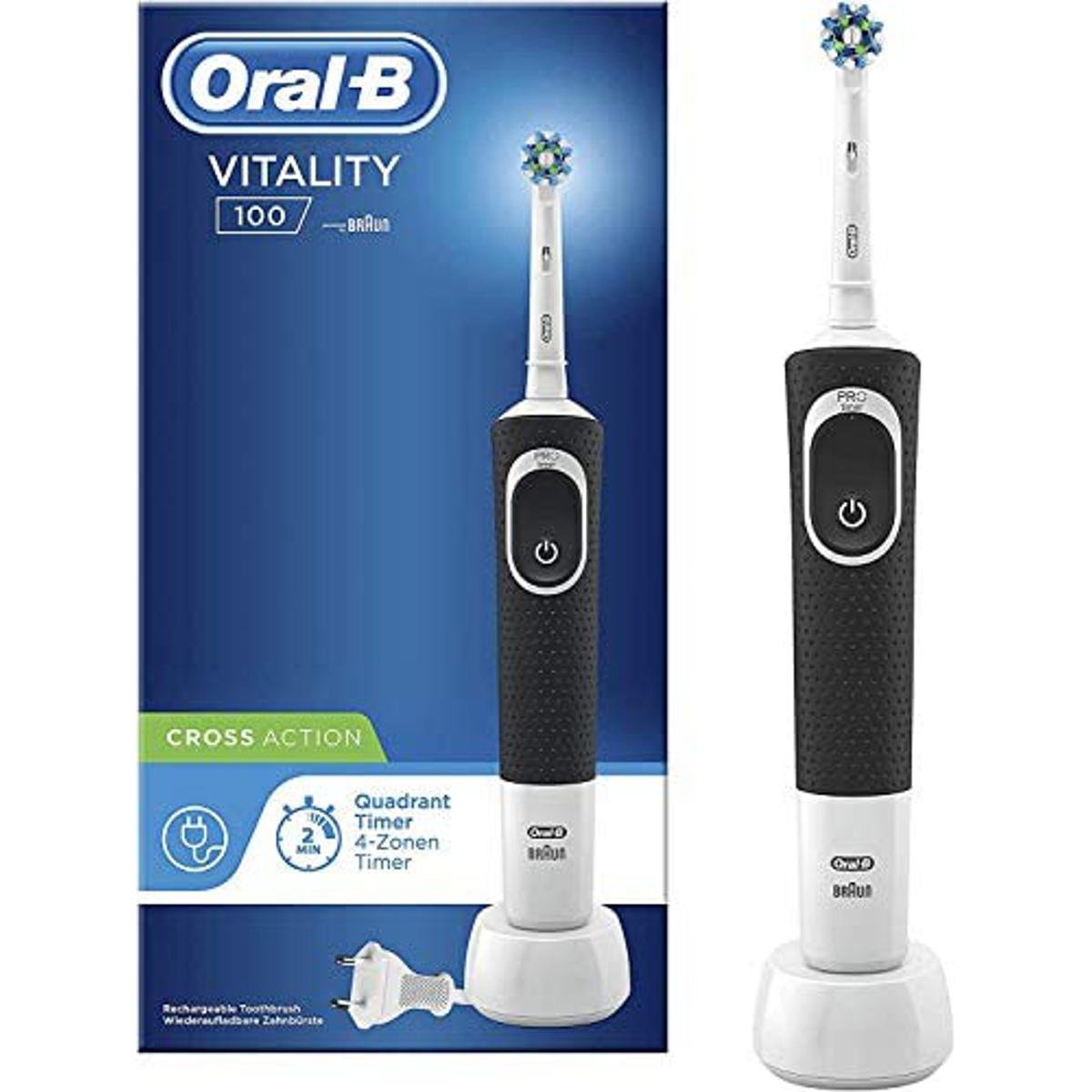 The essential toothbrush to achieve an everyday clean Removes more plaque than a regular manual toothbrush Content: 1 x toothbrush handle with 2-pin charger, 1 x toothbrush head Oral-B, the #1 brand used by dentists worldwide White plus clean rechargeable toothbrush for naturally whiter teeth Oscillates and rotates to remove up to twice as much plaque as a manual toothbrush Pulsates to break-up plaque, and rotates to sweep plaque away 7600 rotations every minute, two minute timer to assist effective brushing