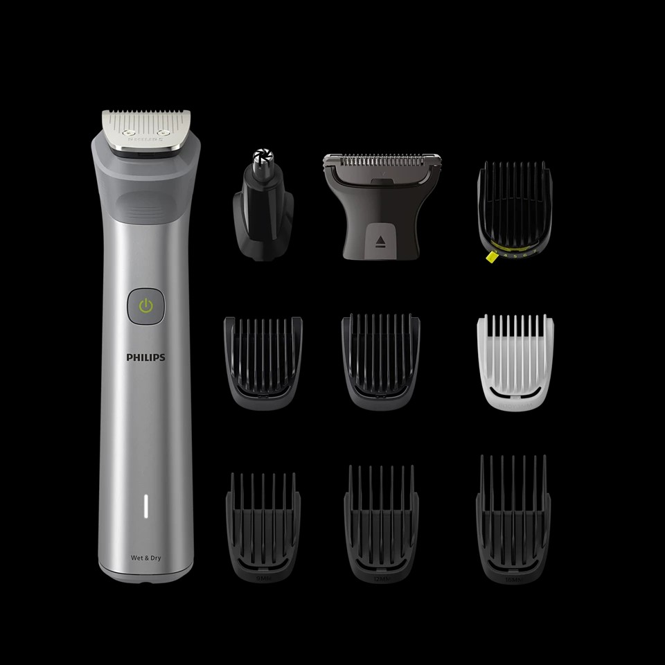 One tool, complete styling Craft your personal look with this versatile trimmer, which includes 11 quality tools for styling your face, head and body. Self-sharpening stainless steel blades stay sharp as day one without oiling for a precise trim. HIGHLIGHTS Easy to grip and control The trimmer is easy to hold and maneuver with an ergonomic rubber grip for superior comfort and control. A trimmer that adjusts to your beard The trimmer scans the beard density 125x per second and boosts power exactly when you need it to tackle also dense, bushy or longer beards. Always know when it s time to charge A battery indicator lets you know your battery status: low, empty, charging or full. So you never get caught with an empty battery in the middle of your trim. Trim ear and nose hair easily and comfortably Avoid nicks and cuts as the all-in-one trimmer quickly removes unwanted nose and ear hair. Water-resistant for convenient use and easy cleaning The trimmer is water resistant, so you can use it comfortably in the shower and clean it easily under the tap. Say goodbye to body hair Shave comfortably below the neck with our body shaver attachment. A unique skin-protection system guards sensitive areas while you shave as close as 0.5 mm. You can also trim body hair with the click-on comb. Your haircut at home With the trimmer s multi-comb system you can choose length settings between 0.5 16 mm to create your hairstyle at home. Long lasting performance for precise results Stainless steel blades remain sharp as day one for long lasting performance. No oil required. All-in-one for face, head & body This all-in-one trimmer offers 11 tools for all your grooming needs. Conveniently trim and style your facial hair, clip your hair and groom your body. Runs 4 weeks on a single charge* A powerful lithium-ion battery provides up to 120 minutes of runtime with 5-minute quick charge option for long life and maximum power. Get an even trim and sharp edges The trimmer and its multi-comb set offer 11 length settings from 0.5 to 16 mm in 1 mm precision steps for shorter and longer beard styles. Create sharp edges and clean up cheeks, chin and neck with the metal trimmer to finish your look. SPECIFICATIONS Power Run time:Up to 120 minutes Battery type:Lithium-ion Charging:60 minutes 5 min quick charge Charging method:USB-A (no adapter included) Maximum power consumption:5 W Input Voltage:5 V Design Handle:Ergonomic rubber grip Service 2-year warranty:Yes Ease of use Maintenance free:No blade oil required Wet & Dry:100% shower proof Display:Battery low indicator Battery full indicator Battery charging indicator Operation:Cordless use only Charging:USB-A Charging (5V / 1A) Versatile styling Styling tools:Steel trimmer Nose and ear trimmer Body shaver with skin protector 2 stubble combs 3-7 mm adjustable comb 3 hair combs 1 body comb Accessories:Soft pouch Cleaning brush USB-A (adapter not included) # of attachments:11 Cutting performance Cutting performance:Self-sharpening steel blades BeardSense technology Length settings:11 (0.5 16 mm) Precision steps:Up to 1 mm