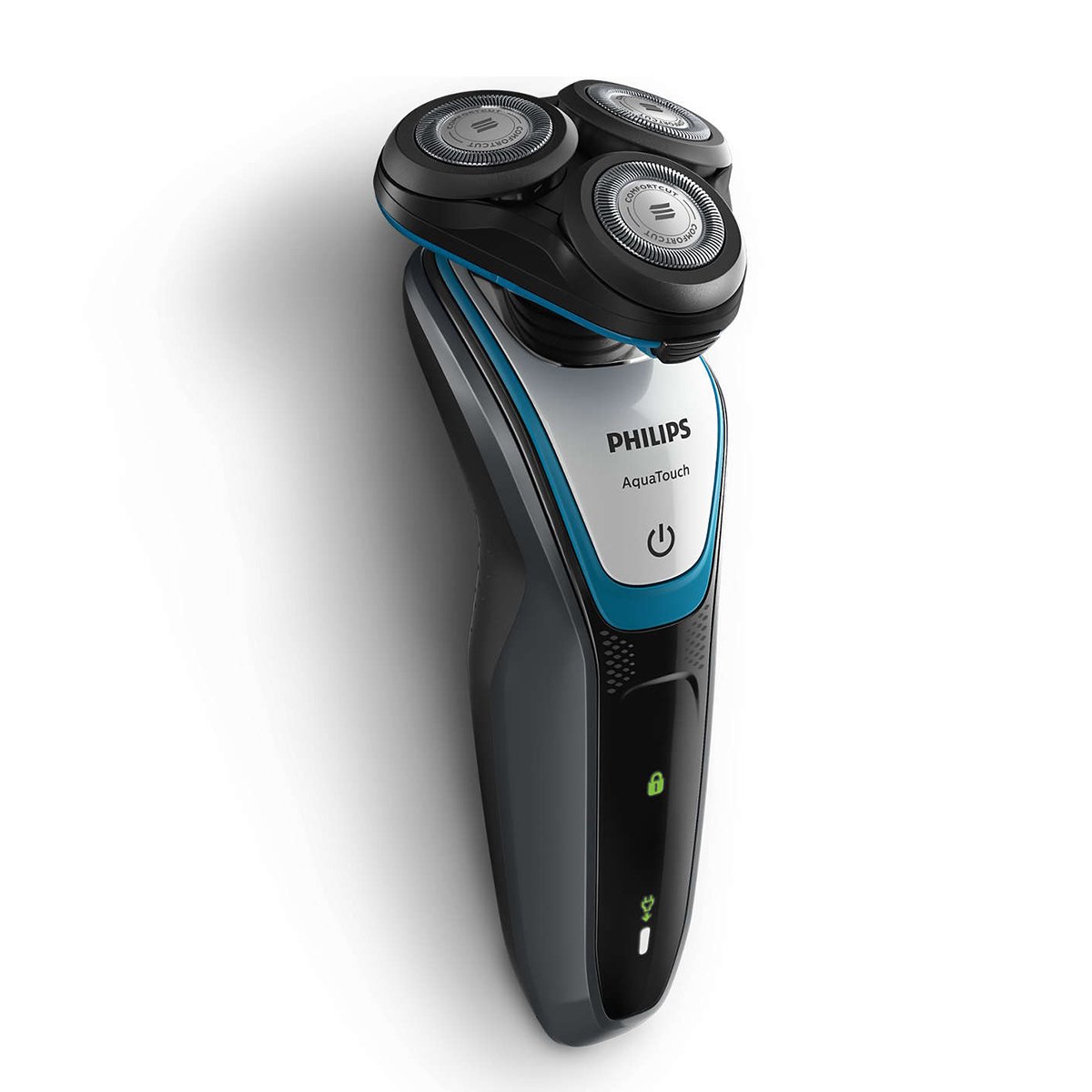 Wet or Dry, Protective Shave Protects 10X better versus a regular blade ComfortCut Blade System 40 min cordless use/1h charge SmartClick precision trimmer The rounded profile of heads designed to protect skin Shave close without nicks and cuts. Our comfort-cut Blade System with rounded head profile glides smoothly across while protecting your skin. Get a comfortable dry or refreshing wet shave with Aquatec Choose how you prefer to shave. With the Aquatec Wet & Dry seal, you can opt for a quick yet comfortable dry shave. Or you can shave wet with gel or foam even under the shower. Rounded edges move smoothly over skin for a protective shave Get a comfortable shave, wet or dry. Our comfort cut blades with rounded profile heads glide smoothly across your skin while protecting it from nicks and cuts. Heads flex in 5 directions for a fast close shave 5-direction Flex Heads with 5 independent movements ensure close skin contact for a fast and close shave even on the neck and jawline. Click-on trimmer for perfect mustache and sideburn trimming Click on our skin-friendly precision trimmer to finish your look. It s ideal for maintaining your mustache and trimming your sideburns. 40 minutes of cordless shaving You ll have 40+ minutes of running time that s about 13 shaves on a one-hour charge. This shaver only operates in cordless mode. 1 hour charging time Shave longer with every charge, thanks to our powerful energy-efficient, long-lasting battery. Do a quick charge for 5 minutes and you ll have enough power for one shave. 1-level battery and travel lock Indicators The intuitive display shows relevant information, enabling you to get the best performance out of your shaver: 1-level Battery Indicator Battery Low Indicator Travel Lock Indicator Specifications: Shaving system ComfortCut Blade System Contour-following 5-direction Flex Heads Skin comfort Skin Protection System AquaTec Wet & Dry Handle Ergonomic grip & handling Color Charcoal Grey -Aquatic Blue Automatic voltage 100-240 V Battery Type NiMH Run time 40 min / 13 shaves Charging 1-hour full charge Quick charge 5 min for 1 shave Max power consumption 9 W Stand-by power 0.1 W SmartClick Precision trimmer Maintenance Protective cap Display 1 level battery indicator Battery low indicator Travel lock indicator Cleaning Fully washable Operation Unplug before use