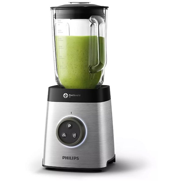 Avance Collection Blender with ProBlend 6 3D Technology, 1400 W, Silver Inspires 80% of users to consume more fruit and veg* 1400 W ProBlend 6 3D 2L glass jar Powerful 1400W motor for smoother blends Finer blending of fruit and vegetables, thanks to our 1400W motor. Advanced ProBlend 6 3D blending technology We developed our ProBlend 6 3D technology to ensure that all of the ingredients in your smoothie are finely blended so the nutrients in fruit, vegetables and nuts are unlocked from the cell structure and easily absorbed by your body. Up to 35,000rpm 35,000RPM for excellent blending and even healthier smoothies Large glass jar for smoothies you can share The large 2litre jar has a working capacity of 1.8litres for deliciously blended smoothies to share with the whole family or save for later. Manual mode with variable speeds From gentle blending for soft fruits, to a burst of power for harder fruit and vegetables it s up to you with our variable manual speed options. Smoothies pre-set programme Smoothies pre-set programme makes homemade smoothies easy. Dishwasher-safe blender jar All detachable parts of your Philips blender are dishwasher safe except for the blade unit, which can be easily rinsed clean. The base can be wiped clean if needed. Detachable blades for easy rinsing To clean the blender blades, simply detach them from the blender jar and rinse. However, to preserve their sharpness, the blades cannot be cleaned in the dishwasher. 2year worldwide warranty You enjoy a 2year worldwide warranty on our blenders which is our guarantee of long-lasting quality and operation.