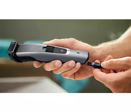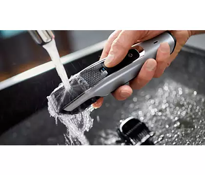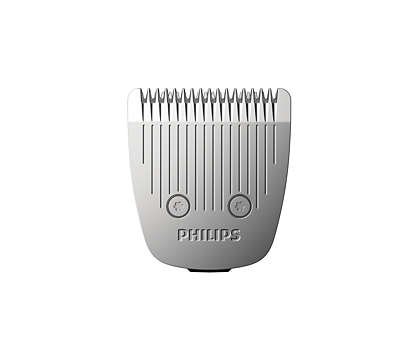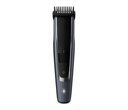 Even length at every angle 2x more precision with Lift & Trim PRO system 0.2mm precision settings Self-sharpening metal blades Up to 90min use/1hr charge Lift & Trim PRO system Trims evenly and captures low-lying hairs Stubble doesn t stand a chance. The Lift&Trim Pro system captures all your low-lying hairs and lifts them up toward the blades for a precise cut whilst still being an ideal trimmer for long beards too. Self-sharpening blades for zero maintenance Suitable for even the thickest hair, the double-sharpened blades guarantee precision edges and superior trimming every time. No oil or replacement blades required. Adjusts to different length settings Cut to the exact length you re after. Just spin the precision dial to one of 40 length settings between 0.4-10 mm in 0.2mm increments. A precision step to match every beard Personalise your grooming routine with precise styling steps to suit every beard. There are 0.2mm steps between 0.4-2mm for short beard styling, 0.5mm steps between 2-5mm to achieve an even 3-day beard 1mm steps above 5mm for long beard maintenance. Cordless use for up to 90 mins Don t get tangled up in your stubble trimmer a 1 hour charge provides up to 90 minutes of cordless grooming time. Or keep it plugged in for uninterrupted trimming. The 5 minute quick charge function gives you enough power for one trim. Easy but thorough cleaning The 100% waterproof beard trimmer, simply rinse it under the tap for a thorough, easy clean. Lights indicate when battery is low, empty, full or charging The battery indicators in this trimmer let you know what your battery status is: Low, empty, charging or full. This way, you can charge your trimmer on time and fully, so you won t end up with an empty battery in the middle of your trim. Technical Specifications Accessories Pouch Storage pouch Comb Lift & Trim comb Long beard comb Power Run time Up to 90 minutes Charging 1 hour full charge 5 min quick charge Battery Type NiMH Automatic voltage 100-240 V Service No oil needed Yes Cutting system Cutting element Stainless steel blades Number of length settings 40 Range of length settings 0.4- 20mm Precision (size of steps) From 0.2mm Ease of use Cleaning Fully washable Zoom wheel Easily adjust length settings Display Battery indicator Operation Corded & Cordless use
