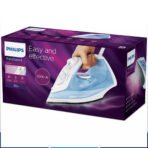 Easy and effective EasySpeed iron makes you re your ironing easy and effective with lots of steam to remove tough creases, non-stick soleplate for easy gliding on all fabrics, Calc Clean function for durable performance Easy and effective 4 steam settings for better ironing results Steam boost up to 90 g Non-stick soleplate Anti-scale Wider hole for easy water filling Integrated water spray evenly moistens the fabric The spray function produces a fine mist that evenly moistens the fabric, making it easier to iron out creases. Power up to 2000 W enabling constant high steam output Power up to 2000 W enables constant high steam output. Non Stick Larger soleplate to cover more in one go* Non-stick soleplate for easy and fast gliding on all fabrics The soleplate of your Philips iron is coated with a special non-stick layer for good gliding performance on all fabrics. Triple precision tip to reach the most tricky areas The tip of this Philips iron is precise in 3 ways: it has a pointed tip, button groove and a sleek design of the nose. Triple Precision tip enables you to reach even into the most tricky areas, e.g. around the buttons or between the pleats. Specifications: Fast crease removal Continuous steam 25 g/min Power 2000 W Steam boost 90 g Variable steam levels Yes Easy to use Soleplate name Non-stick Spray Yes Water tank capacity 220 ml Scale management Descaling and cleaning Smart Calc Clean Technical specifications Cord length 1.9 m Heating time 30 sec Power On mode (ECO mode) . Design and finishing Color Light blue