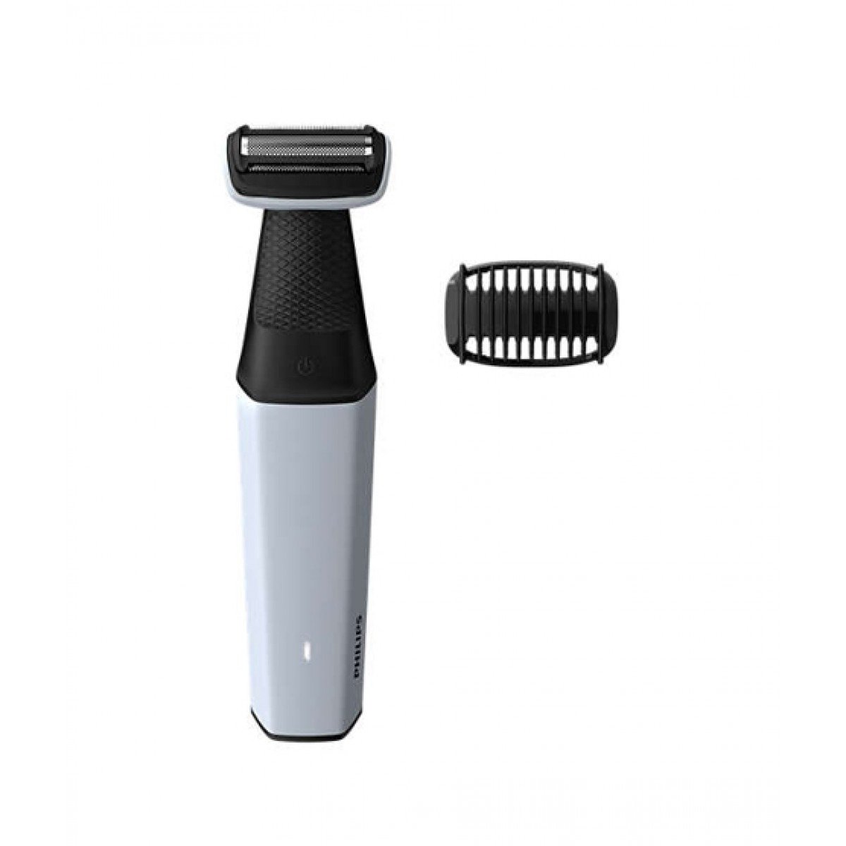 Designed to protect even in sensitive areas Skin friendly shaver 1 click-on comb, 3mm 40mins cordless use/8h charge Confidently shave or trim all body zones Designed to be safe and comfortable for underarms, chest & abs, shoulders, groin area and legs. The skin friendly shaver catches and cuts hairs of different lengths, without the need for multiple tools or skin contact with sharp edges. Rounded tips and hypoallergenic foil for skin comfort The shaver head features patented rounded tips and a hypo-allergenic foil to protect your skin while shaving. The bi-directional trimmers cut longer hairs, which are shaved by the foil for a closer result. Includes 1 comb for a natural trim (3mm) 1 comb included for a natural 3mm trim. Attach the comb onto the shaving system, to trim hair to a fixed length of 3mm. You can use the shaving system without the comb, for a closer result. For thicker hair, pre-trimming with the comb is recommended. 40 minutes cordless use after an 8-hour charge High-power rechargeable battery for full body use, with 40 minutes of cordless use after an 8-hour charge. The battery light indicates power status, when the battery is low or full. Easy to clean and use in or out of the shower Provides a comfortable and close result in or out of the shower. The body groomer is fully water-resistant, so you can simply rinse it clean when you ve finished. For longer hair, trimming performance may be better on dry hair. Ergonomic grip for maximum control The rubber grip is designed to ensure optimal handling even when wet, for better control during use, in or out of the shower.