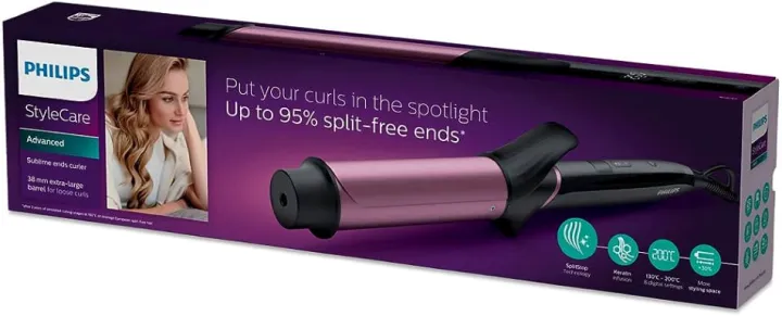 Our secret to ultimate split ends prevention is the new SplitStop Technology. It is a unique combination of optimized heat performance and minimized friction level to respect the health of your hair from roots to tips. There are no sudden temperature changes which ensures the optimum heat is delivered constantly and evenly along the when you style. It is coated with smooth ceramic to reduce the traction on hair strands. Create perfect curls with heathier ends full of new life.