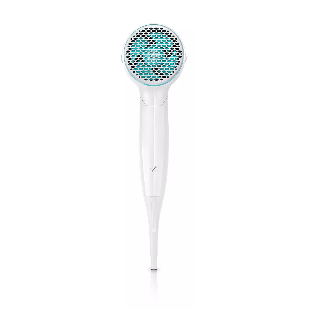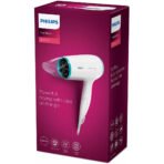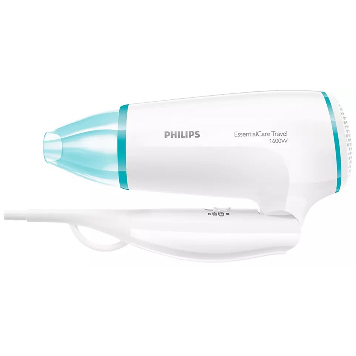 1600W for gentle drying This 1600W hairdryer creates the optimum level of airflow and gentle drying power, for beautiful results every day. 3 flexible speed settings for gentle drying This hairdryer offers 3 pre-selected speed/heat combinations to make it quick and easy to achieve the perfect style. Cool Shot sets your style A must-have professional setting, the Cool Shot provides a burst of cold air. Use after styling to set and finish your style. Designed for quieter drying The design of the air inlet grill allows for increased air flow while, the shape and size of the dryer improves flow of the air through the dryer. The result is faster, more effective drying power. The Philips Essential Care 1600W, has a 20% sound imrpovement versus HP4940. This way you can dry your hair quietly without compromising on performance. Foldable handle for easy storage This hairdryer has foldable handle, making it easy to pack, store and take with you anywhere you go. Dual voltage for worldwide use Dual voltage for worldwide use Easy storage hook for convenient storage A rubberized hook can be found on the base of the handle. Use to store easily at home or if staying at a hotel. 1.8m cord 1.8m cord for maximum flexibility ThermoProtect temperature setting The ThermoProtect temperature setting provides the optimal drying temperature and gives additional protection from overheating the hair. With the same powerful airflow, you will get the best results in a caring way. Specifications: Frequency 50-60 Hz Wattage 1600 W Power 1600 W Cord length 1.8 m Color/finishing ABS high gloss and matt Motor DC Motor Voltage 110-127 / 220-240 V Product size 125 x 80 x 245mm Hanging loop Yes Foldable handle Yes Coolshot Yes Dual voltage Yes Travel Pouch included Yes Ceramic No Ion conditioning No Number of attachments 1 Nozzle / Concentrator Yes Diffuser No
