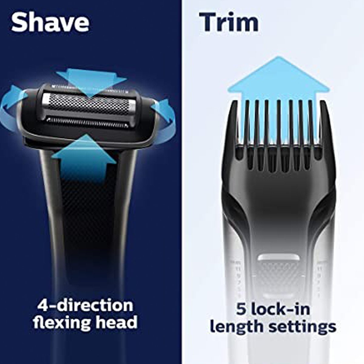 Our most advanced bodygroomer 4-directional pivoting shaver Integrated, adjustable trimmer 80 min runtime, 1-hour charge Unique dual-sided design A body groomer that takes care of your skin Now you can confidently trim and shave everywhere below the neck with just one tool. Use the Philips Bodygroom 7000 full body trimmer and shaver to trim with one single attachment for an even result on your back, shoulders, chest, abs, underarm, arms, groin and legs. For a close and comfortable body shave The 4-directional pivoting body shaver and trimmer adapts to every contour of your body for your closest shave yet. Trims hair in every direction You can trim and cut hair in any direction. That s thanks to the adjustable trimmer with 5 trim lengths ranging from 1/8 (3mm) to 7/16 (11mm), including a guard and self-sharpening blades. Protects skin while shaving or trimming This men s body groomer captures short, long and thick hair in a single stroke thanks to the blade s rounded tips, designed to protect your skin from cuts and nicks. Use wet or dry Your wet and dry body groomer is 100% water resistant, so you can use it in or out of the shower. For best results, use on dry hair before showering. Easy to grip Your body groomer is easy to hold and maneuver, with a rubber ergonomic grip to help you keep control while you trim. Warranty for purchase protection All of our grooming products are built to last. They come with a 5 year warranty and they never need to be oiled. 80 minutes cordless use after a 1-hour charge Tackle hair on any part of your body with a single charge. The powerful battery can be used for 80 minutes on a single 1-hour charge, with a battery level light that shows how much charge is left. Our most advanced bodygroomer 4-directional pivoting shaver Integrated, adjustable trimmer 80 min runtime, 1-hour charge Unique dual-sided design A body groomer that takes care of your skin Now you can confidently trim and shave everywhere below the neck with just one tool. Use the Philips Bodygroom 7000 full body trimmer and shaver to trim with one single attachment for an even result on your back, shoulders, chest, abs, underarm, arms, groin and legs. For a close and comfortable body shave The 4-directional pivoting body shaver and trimmer adapts to every contour of your body for your closest shave yet. Trims hair in every direction You can trim and cut hair in any direction. That s thanks to the adjustable trimmer with 5 trim lengths ranging from 1/8 (3mm) to 7/16 (11mm), including a guard and self-sharpening blades. Protects skin while shaving or trimming This men s body groomer captures short, long and thick hair in a single stroke thanks to the blade s rounded tips, designed to protect your skin from cuts and nicks. Use wet or dry Your wet and dry body groomer is 100% water resistant, so you can use it in or out of the shower. For best results, use on dry hair before showering. Easy to grip Your body groomer is easy to hold and maneuver, with a rubber ergonomic grip to help you keep control while you trim. Warranty for purchase protection All of our grooming products are built to last. They come with a 5 year warranty and they never need to be oiled. 80 minutes cordless use after a 1-hour charge Tackle hair on any part of your body with a single charge. The powerful battery can be used for 80 minutes on a single 1-hour charge, with a battery level light that shows how much charge is left.c Technical Specifications Feature Details Create the Look You Want Number of Length Settings 5 adjustable length settings Service 5-Year Worldwide Warranty* Yes Cutting System Shaving Element Foil Trimming Element Integrated Skin Comfort Comfort in sensitive areas Accessories Maintenance Cleaning brush Ease of Use Maintenance-Free No oil needed Wet & Dry Fully washable Showerproof Yes, easy cleaning Operation Cordless use Secured Length Settings Yes Design Handle Ergonomic grip & handling Power Battery Type Lithium-ion Charging 1 hour full charge Run Time 80 minutes