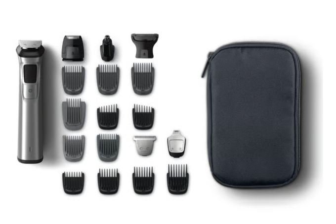 All-in-One Trimmer Ultimate Precision: our most advanced blades 22 piece DualCut blades 5 hour runtime Stainless steel design Maximum precision with 2x more blades This all-in-one hair trimmer features advanced DualCut Technology for maximum precision. It comes with double blades, and is designed to stay as sharp as day 1. Easy to maintain Philips Multigroom and all of its attachments are fully washable, so simply rinse them under the faucet for easy cleaning. Reinforced guards that won t bend or buckle Get an even trim every time, with unique reinforced cutting guards designed to prevent bending and buckling that s common with impact. Easy to grip and control It s comfortable and easy to grip your styling trimmer, thanks to the stainless steel frame and rubber grip that improves control. Self-sharpening blades for a smooth result Create clean, straight lines and evenly trim through the thickest hair thanks to the multipurpose trimmer s precise steel blades. These non-corrosive blades won t rust, and they self-sharpen to last longer. Keep those lines straight The foil shaver quickly and comfortably shaves clean lines around your style. Get the details right The narrow design of the steel precision groomer makes it easy to precisely edge and finish small details. Keeps nose and ear hair at bay Avoid nicks and cuts, as the all-in-one trimmer quickly removes unwanted nose and ear hair. Extra-wide hair trimmer to cover more areas faster Cut and trim your hair or create fades easily, thanks to the body trimmer s extra-wide design that helps capture more hair in each stroke. Keep your lines clean and precise the way you want. 14 reinforced guards to trim beard, stubble, head and body Multiple lengths for quick and convenient head-to-toe triming. The reinforced guards are individually marked, and deliver clean, even cuts and trims on beard, stubble, head and body. Trim and style your face, head and body with 21 piece 21 piece for all your trimming needs: a metal trimmer, a foil shaver, a detail metal trimmer, a nose and ear trimmer, an extra-wide hair trimmer, 6 hair trimming guards, 3 beard trimming guards, 2 stubble trimming guards, an eyebrow trimming guard, a storage bag and a cleaning brush. The trimmer can be used cordless The trimmer can conveniently be used cordless for 5 hours. Enough battery for 6 hours of runtime Tackle hair on any part of your body with a single charge. This Philips trimmer has a powerful battery that can be used for up to 6 hours per charge. Category Specification Create the Look You Want Styling Tools Metal trimmer, Foil shaver, Nose & ear trimmer, Extra-wide hair trimmer, Bodyshaver, Detail metal trimmer Guards & Attachments 3 beard trimming guards, 2 stubble trimming guards, 6 hair trimming guards, Eyebrow trimming guard Number of Attachments/Guards 5 attachments, 14 guards Bodygroom/Hairclipping/Facial Long beard, Short beard, Stubble look, Sharp lines, Detailed styling, Goatee Accessories Pouch Storage pouch Maintenance Cleaning brush Power Charging 5 min quick charge, 2 hours full charge Run Time 6 hours Automatic Voltage 100 240 V Battery Type Lithium-ion Design Handle No-slip rubber grip, Stainless steel handle Service Warranty 5-year warranty Cutting System Technology DualCut technology (cuts in two directions) Blade Type Self-sharpening blades Trimming Guards Reinforced to prevent bending and buckling Ease of Use Cleaning Fully washable Maintenance-Free No oil needed Display Indicators Charging indicator, Battery low indicator Operation Cordless use