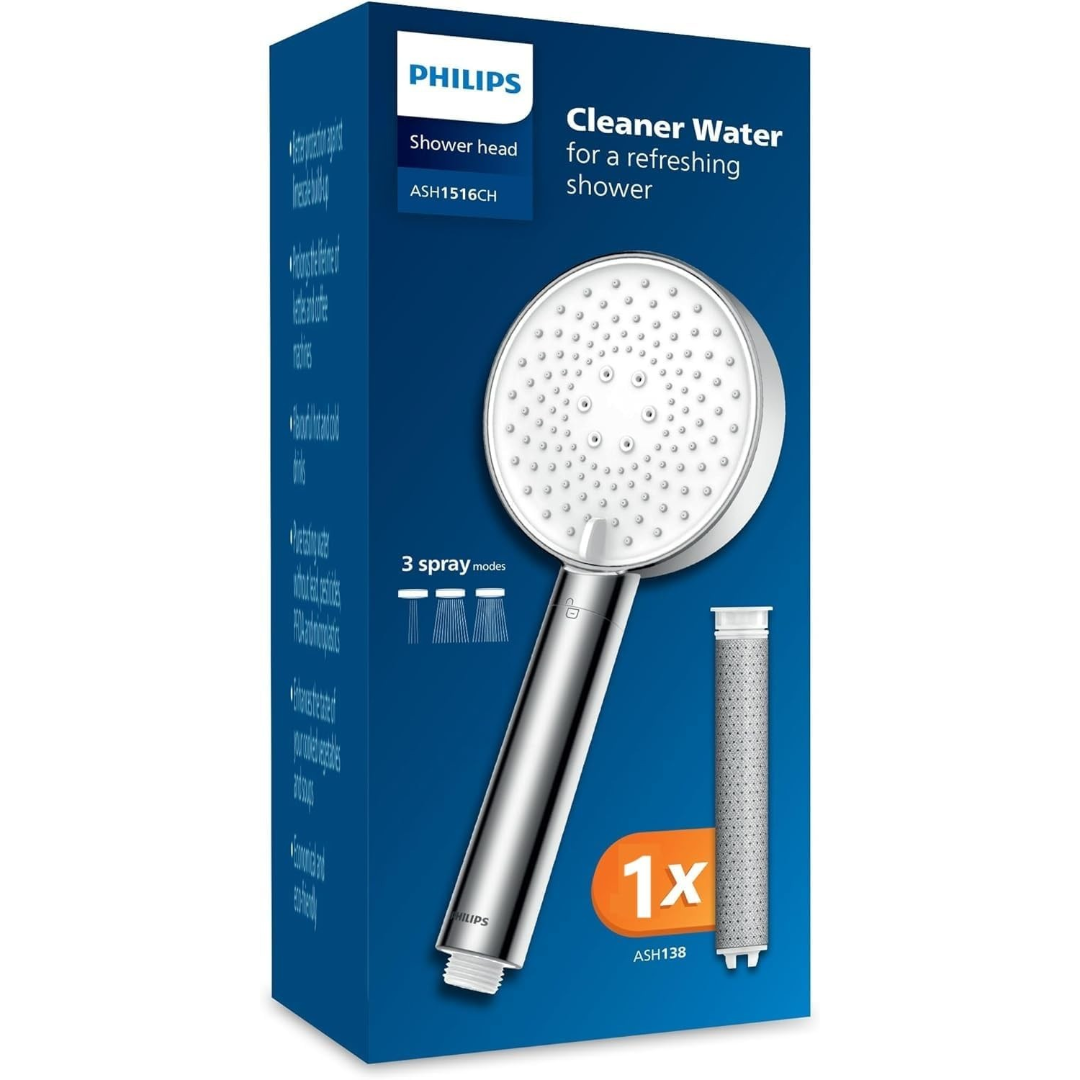 Technical Details Manufacturer PHILIPS Part number ASH1516CH/10 Item Weight 320 g Product Dimensions 27.3 x 12 x 12.7 cm; 320 g Item model number ASH1516CH/10 Size Chrome Color silver Style Modern Finish Polished Material Kunststoff Shape Round Installation Method Wall Mounted Item Package Quantity 1 Special Features Filter entfernt Chlor, Sedimente, Blei und Pestizide; wassersparendes Design; drei Spr hmodi Included components 1 replacement filters Batteries Required No
