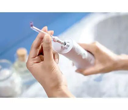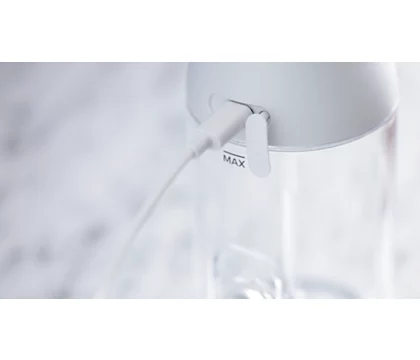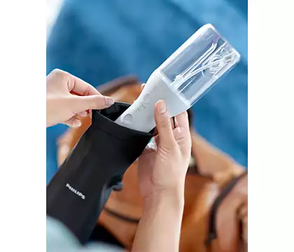 Flossing reinvented with QuadStream technology Removes up to 99.9% of plaque* in treated areas Quad Stream technology Pulse waves guide as you go Quad Stream technology for faster, more effective flossing Unique X-shaped Quad Stream tip separates flow into 4 water jets, which cover more area between teeth and along the gum line. Get a faster, deeper clean without the hassle of string floss. Pulse Wave technology guides from tooth to tooth Gentle pulses of water keep you going and guide you from tooth to tooth in Deep Clean mode so you get it right every time. 2 flossing modes, 3 intensities Choose the clean that suits your smile. Clean mode delivers continuous flow for effective everyday cleaning. Deep Clean pulses for more thorough cleaning. Adjustable intensity level adapts for comfort. Complete clean in 60 seconds Access those hard-to-reach areas with a nozzle that rotates 360 degrees, so that you can use the device in any orientation.Get a thorough 360 clean in just 60 seconds from start to finish. Fast, universal charging with USB-C cable Convenient charging with a USB-C cable uses the same connection as most mobile phone or tablet. Get up to 14 days of cleaning from a single charge. Easy-to-fill 250 ml reservoir Reservoir capacity of 250 ml holds enough water for a recommended 60-second clean. Simply twist and remove or use the side-fill door for easy refilling. Effortless technique Just point, press and clean for more effective flossing. Aim the tip between your teeth and along the gumline and let it do all the work for you! Standard tip for spot cleaning A standard single-stream tip boosts pressure for for spot cleaning and removing food debris when you need it. Technical Specifications Power Voltage Multi-voltage charger Service Warranty 2-year limited warranty Ease of use Handle Slim ergonomic design Nozzle attachment Easily clicks on and off Performance Cleaning Clean entire mouth in 60-90sec Items included Cordless Power Flosser 1 F1 Standard nozzle 1 F3 Quad Stream nozzle 1 Travel bag 1 USB charging cable 1 USB wall adaptor 1 Modes Clean For exceptional everyday clean Deep Clean+ For an invigorating deep clean Intensities 3 Design and finishing Color White