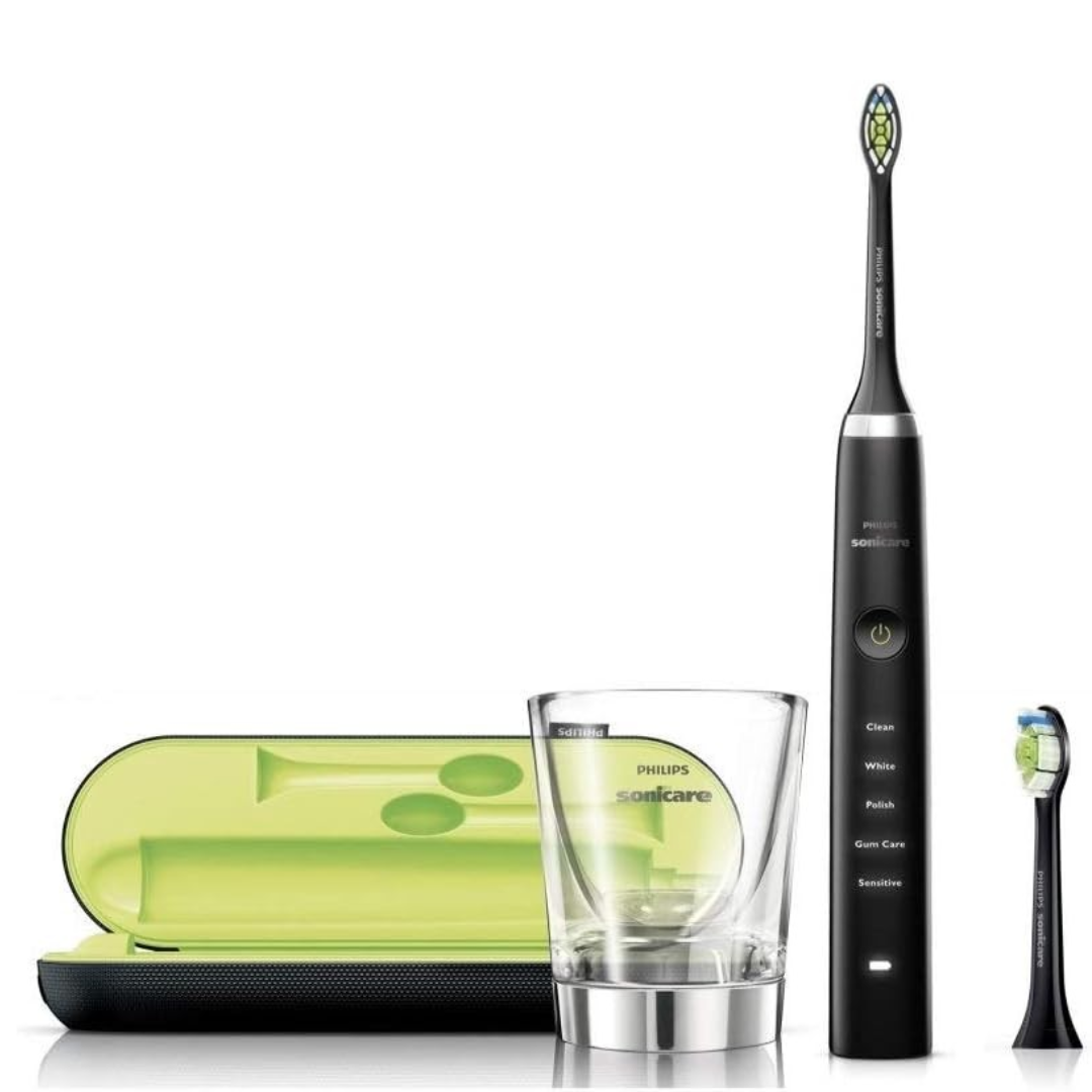 In case you feel that your regular toothbrush isn t delivering what it promises to, then it may be time for a change. Bring home the Philips Sonicare DiamondClean Sonic Electric Toothbrush, and find a visible change in your dental care routine.This Philips Sonicare toothbrush is an effective and versatile tool for oral hygiene. Equipped with the DiamondClean Sonicare toothbrush head, it whitens your teeth twice as well as a manual toothbrush. Featuring a two minute timer, this electric toothbrush ensures that you never exceed the recommended brushing time. Equipped with the Sonicare dynamic cleaning action, it cleans between the teeth to prevent plaque. It features a black color and comes equipped with two DiamondClean standard brush heads to give you a fastidious and comfortable brushing experience.The Philips Sonicare DiamondClean Sonic Electric Toothbrush is convenient to say the least. You can charge this toothbrush by storing it in the travel case provided, which connects to your laptop via USB. It can also be plugged to a wall charging outlet. This Philips toothbrush is going to make life very easy for you, while you re on the go.The diamond clean toothbrush from Phillips comes equipped with two DiamondClean standard brush heads that help remove plaque from your teeth. In addition to this, it has five modes, including Clean, Gum Care, Polish, Sensitive, and White Mode, which make it obedient to different dental requirements.A Treat for Your Teeth The Philips Sonicare DiamondClean Sonic Electric Toothbrush has some amazing features. This toothbrush removes plaque and whitens your teeth to let you flaunt that beautiful smile all day long. Additionally, it helps make your gums healthier in two weeks, thanks to optimal cleaning around the gum line. Up to 7x more plaque removal than a manual toothbrush Densely-packed, high-quality bristles remove up to 7x more plaque than a manual toothbrush. A whiter smile in 1 week with our DiamondClean brush head Click on our DiamondClean brush head to gently yet effectively remove surface stains. Densely packed central stain removal bristles work hard to make your smile 2x whiter in just 7 days. Improves gum health in just 2 weeks With optimal cleaning from your DiamondClean, gums will become healthier in 2 weeks. Removing up to 7x more plaque along the gum line than a manual toothbrush*, you ll get your healthiest smile. Choose from 5 modes including Polish and Sensitive With DiamondClean, you get a refreshing clean every day. Our 5 modes cover all your brushing needs; Clean mode for exceptional daily cleaning, Gum Care to gently massage gums, Polish to brighten your smile, Sensitive for gentle yet effective cleaning of sensitive gums, and White the ideal mode to remove surface stains. USB charging travel case and charging glass Your deluxe USB travel case doubles as a charger so you stay topped up on the go. Place your toothbrush in the case and connect to your laptop or plug into a wall socket. Also includes a brush head holder for extra hygiene when traveling. As for charging at home, our sleek charger glass fits stylishly into your bathroom and doubles as a glass for rinsing after brushing. Simply place your brush into the glass. Enjoy two weeks of regular use from a single full charge. Philips Sonicare s advanced sonic technology Philips Sonicare s advanced sonic technology pulses water between teeth, and its brush strokes break up plaque and sweep it away for an exceptional daily clean. Timers encourage thorough 2 minutes of brushing It takes just 2 minutes to thoroughly brush your teeth. Our QuadPacer lets you know when you ve spent the optimal amount of time on each section of your mouth while our SmarTimer signals when your total time is up. Together they help you reach your recommended brushing time, every time. Angled neck to help tackle cleaning in tough areas The unique shape of your DiamondClean toothbrush handle combined with our brush heads means that even tricky spots like back teeth get a thorough clean. Easy start program builds your Philips Sonicare routine Starting something new can take some getting used to. Our easy-start program gives you the option of a gradual, gentle increase in brushing power with the first 14 uses with your new toothbrush. Safe and gentle for your oral health needs Whatever your specific needs, you can be sure of a safe brushing experience with DiamondClean. Our sonic technology is suitable for use with braces, fillings, crowns and veneers, and can even be used in the daily treatment of gum disease.