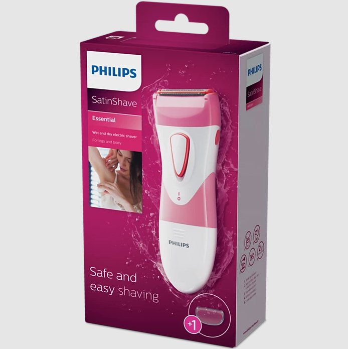 Safe and easy shaving for legs Single foil shaver Battery operated Wet & dry for use in bath or shower For a gentle and comfortable use during your shower or bath routine with anti slip grip for optimal wet & dry use. Battery operated Shave anywhere with this cordless lady shaver. Hypoallergenic foil Hypoallergenic foil prevents irritations and rashes Technical Specifications Cordless Foil Shaver Category Specification Category Specification Accessories Technical Details Cleaning Brush Yes Voltage 21.5V (3V total) AA Batteries 2 included Shaving Foils 1 Travel Cap Yes Performance Ease of Use Shaving Head Single Foil Cordless Yes Design Handle Ergonomic Wet & Dry Use Yes Key Features: Portable AA battery operation Complete travel kit (brush, cap) Single-foil shaving system Waterproof for wet/dry use