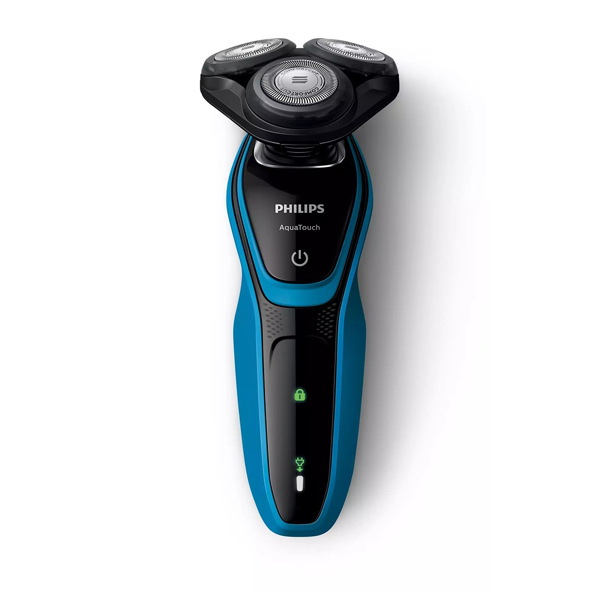 Wet or Dry, Protective Shave Protects 10X better versus a regular blade ComfortCut Blade System 30 min cordless use/8h charge SmartClick precision trimmer Rounded profile of heads designed to protect skin Shave close without nicks and cuts. Our ComfortCut Blade System with rounded head profile glide smoothly across, while protecting your skin. Get a comfortable dry or refreshing wet shave with Aquatec Choose how you prefer to shave. With the Aquatec Wet & Dry seal, you can opt for a quick yet comfortable dry shave. Or you can shave wet with gel or foam even under the shower. Rounded edges move smoothly over skin for a protective shave Get a comfortable shave, wet or dry. Our ComfortCut blades with rounded profile heads glide smoothly across your skin while protecting it from nicks and cuts. Heads flex in 5 directions for a fast close shave 5-direction Flex Heads with 5 independent movements ensure close skin contact for a fast and close shave even on neck and jaw line. Click-on trimmer for perfect mustache and sideburn trimming Click on our skin-friendly precision trimmer to finish your look. It s ideal for maintaining your mustache and trimming your sideburns. 30 minutes of cordless shaving You ll have 30+ minutes of running time that s about 9 shaves on an eight-hour charge. This shaver only operates in cordless mode. 8-hours charging time Shave longer with every charge, thanks to our powerful energy-efficient, long-lasting nimh battery. 1-level battery and travel lock Indicators The intuitive display shows relevant information, enabling you to get the best performance out of your shaver: 1-level Battery Indicator Battery Low Indicator Travel Lock Indicator Specifications: Shaving Performance Shaving system ComfortCut Blade System Contour-following 5-direction Flex Heads Skin comfort AquaTec Wet & Dry Skin Protection System Design Handle Ergonomic grip & handling Color Aquatic Blue Aquatic Blue Black Power Automatic voltage 100-240 V Battery Type NiMH Run time 30 min / 9 shaves Charging 8 hours full charge Max power consumption 9 W Stand-by power 0.1 W Accessories SmartClick Precision trimmer Maintenance Protective cap Ease of use Display 1 level battery indicator Battery low indicator Travel lock indicator Cleaning Fully washable Operation Unplug before use
