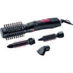 4-fold protection for the hair through the exclusive antistatic ceramic tourmaline coating (compared to the REMINGTON standard ceramic coating) 4 styling attachments 50 mm thermal round brush for volume and body, 30 mm round brush attachment with retractable bristles, 21 mm round brush attachment with mixing bristles, styling nozzle attachment 3 combined heating and fan levels including cold setting On / off switch, roll-out button, cable swivel joint Heat-resistant storage bag, 1000 watts To maintain peak product performance and to prolong motor life, it is important to regularly remove dust and dirt from the air filter grille and lean with a soft brush During use, always ensure the inlet and outlet grilles are not blocked in any way as this will cause the unit to automatically stop. If this should occur, swtich off and allow the unit to cool.