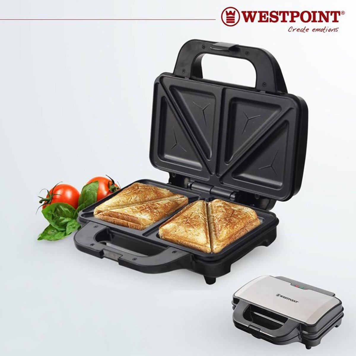 WestPoint Sandwich Toaster WF-6697 Silver & Black.